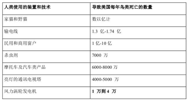 對(duì)于大多數(shù)專家而言,關(guān)于鳥類死亡率的爭(zhēng)議存在著一定的問(wèn)題。大量的死亡率研究表明,至少和其它人造裝置相比,風(fēng)力渦輪機(jī)殺死的鳥類相對(duì)而言非常少。但是,如果你想要知道到底有多少人因?yàn)橐S護(hù)鳥類的利益而強(qiáng)烈反對(duì)使用風(fēng)力渦輪發(fā)電機(jī),那么這一統(tǒng)計(jì)數(shù)字確實(shí)十分驚人。