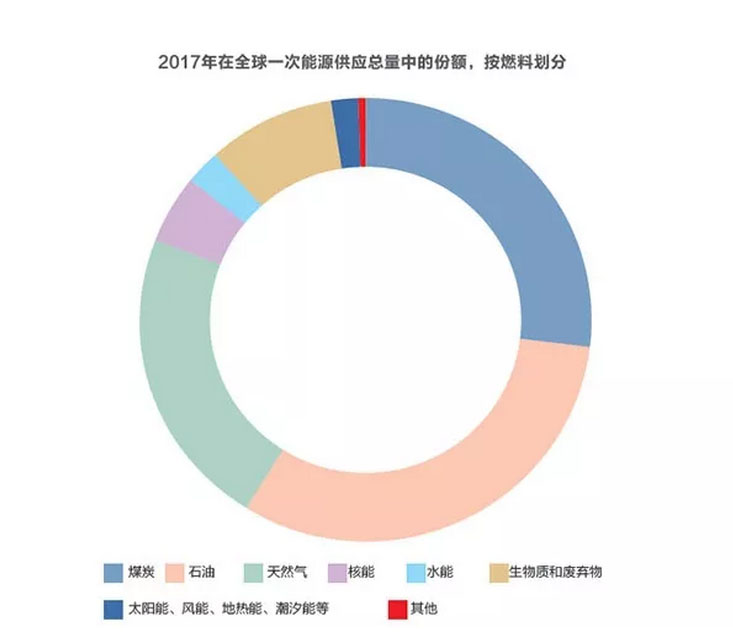 2017年,世界一次能源總供應(yīng)量為139.72億噸油當(dāng)量,其中13.5%或1894萬噸油當(dāng)量(2016年為1845萬噸油當(dāng)量)來自可再生能源。