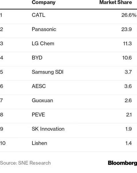 該研究機(jī)構(gòu)表示,按容量衡量,松下10月電池銷量下降了38%,比亞迪下降了66%,比亞迪排名第三的位置也讓給了韓國的LG化學(xué)。市場領(lǐng)袖寧德時代下降了17%。