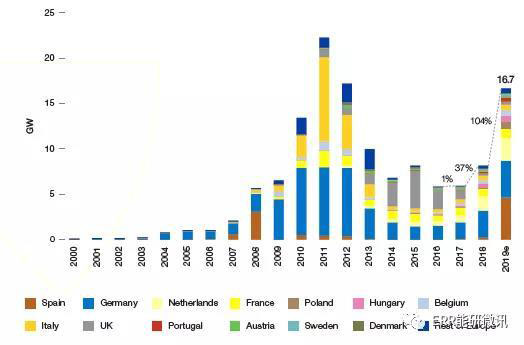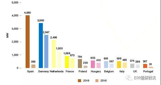 2018~2019年歐盟太陽能光伏市場top10