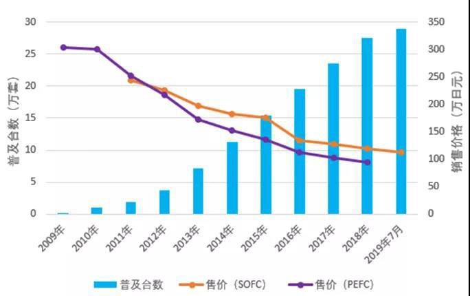 圖2 日本家用燃料電池銷售數(shù)量及價格