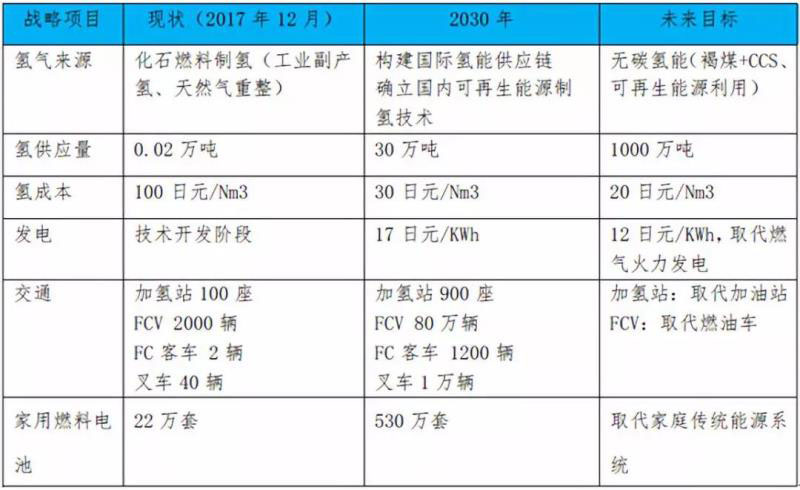 2017年,日本政府發(fā)布了《氫能源基本戰(zhàn)略》,為全球首例。戰(zhàn)略提出了2050年愿景和2030年行動計劃,在氫的供應(yīng)和氫能利用方面提出詳細的目標(biāo)。