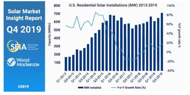 2、2019第三季度,美國屋頂光伏裝機700MW,創(chuàng)新記錄。