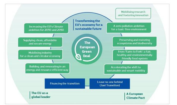11日,歐委會在《歐洲綠色新政》中回答了這一疑問:歐委會提出了行動路線圖以及所需的投資和可用的融資工具,并指出這一計劃將涵蓋歐盟經(jīng)濟所有領(lǐng)域,尤其是交通、能源、農(nóng)業(yè)、建筑以及鋼鐵、水泥、信息和通信技術(shù)、紡織和化工等行業(yè)。