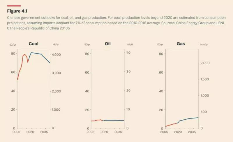 ——中國政府的計(jì)劃和預(yù)測表明,到2020年中國煤炭產(chǎn)量可能增至39億噸,此后緩慢下降。中石化預(yù)計(jì),中國的石油產(chǎn)量將保持在每天約400萬桶。預(yù)期需求增加,中石化預(yù)計(jì)天然氣產(chǎn)量將繼續(xù)快速增長,到2040年將是目前水平的兩倍以上,但中國仍然是主要的天然氣進(jìn)口國。