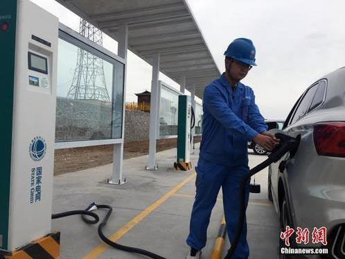 資料圖。青海湖畔首座電動汽車充電站投運(yùn)。中新社記者 羅云鵬 攝