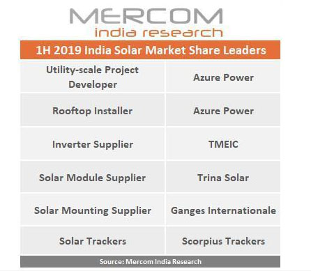 印度企業(yè)Scorpius Trackers是2019年上半年印度市場(chǎng)太陽(yáng)能跟蹤器的頂級(jí)供應(yīng)商。同期,太陽(yáng)能安裝結(jié)構(gòu)的最大供應(yīng)商是恒河國(guó)際(Ganges Internationale),其次是Purshotam Profiles和Strolar。