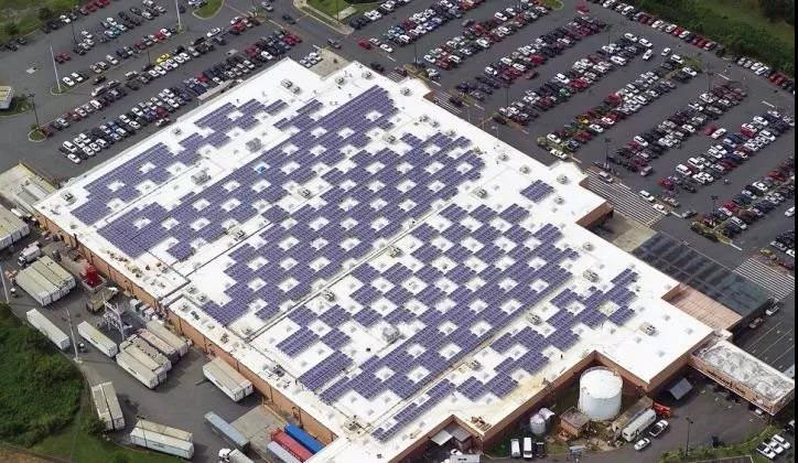 圖片:鋪設(shè)在沃爾瑪超市屋頂?shù)奶?yáng)能發(fā)電系統(tǒng)