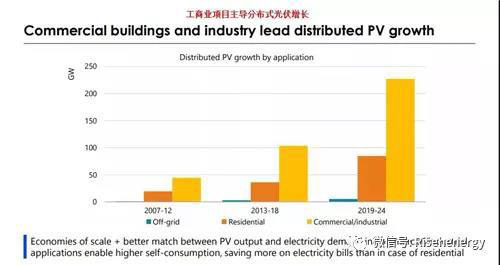 到2024年,分布式光伏將占整個(gè)太陽能光伏市場(chǎng)增長的近一半。與傳統(tǒng)觀點(diǎn)相反的是,在未來五年分布式光伏的發(fā)展中,工商業(yè)光伏項(xiàng)目將以四分之三的份額占據(jù)分布式光伏新增量的主導(dǎo)地位,而不是住宅屋頂項(xiàng)目。這是因?yàn)?,?guī)模經(jīng)濟(jì)能與光伏供應(yīng)和電力需求的更好協(xié)調(diào)相結(jié)合,更大的自用比例,可以為工商業(yè)企業(yè)節(jié)省更多的電費(fèi)。