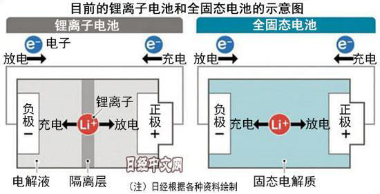 據(jù)日本經(jīng)濟(jì)新聞中文網(wǎng)10月31日消息稱,全固態(tài)電池是鋰離子電池的一種,在鋰離子來回移動(dòng)的通道上采用固態(tài)電解質(zhì),取代現(xiàn)有電池的電解液?,F(xiàn)有電池的電解液采用有機(jī)溶劑類材料,存在起火的可能性,在安全性上存在問題。全固態(tài)電池不使用可燃性電解液,安全性更高。全固態(tài)電池還無需被稱為隔離層的零部件,能減少零部件個(gè)數(shù),降低制造成本。通過避免使用液體,克服了鋰離子電池充放電過程中離子溶出的問題,有助于延長使用壽命。
