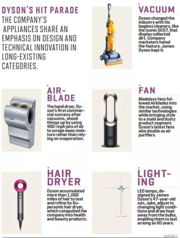 戴森現(xiàn)年72歲,身材瘦長(zhǎng),戴著儒雅的藍(lán)框眼鏡,穿著銅色長(zhǎng)款?yuàn)A克,盡管它有時(shí)不禁讓人想起瘋狂科學(xué)家所穿的實(shí)驗(yàn)室外套。他正在瀏覽公司的最新產(chǎn)品:使用圓形氣流避免熱損傷的吹風(fēng)機(jī)、使用空氣旋渦包裹卷發(fā)的發(fā)型器、吹熱和吹冷的無葉片橢圓形空氣凈化器以及水龍頭和干手機(jī)的組合產(chǎn)品等。這份名單還在繼續(xù),最終不可避免地以無線真空吸塵器結(jié)束,這是消費(fèi)者與戴森的名字聯(lián)系最緊密的產(chǎn)品類別。