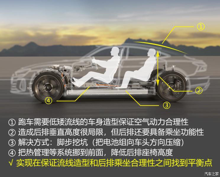 舉個具體的例子,為了達到性能指標,比如賽道圈速或者動態(tài)指標,重心設(shè)計是一個決定性的基礎(chǔ),所以這就是為什么J1平臺會比PPE平臺,在后排底盤多出兩個腳坑,當對電池的位置降低和厚度削薄工作做到比較極限后,外觀的空氣動力學(xué)也要盡可能完美,才能像極致性能靠近。