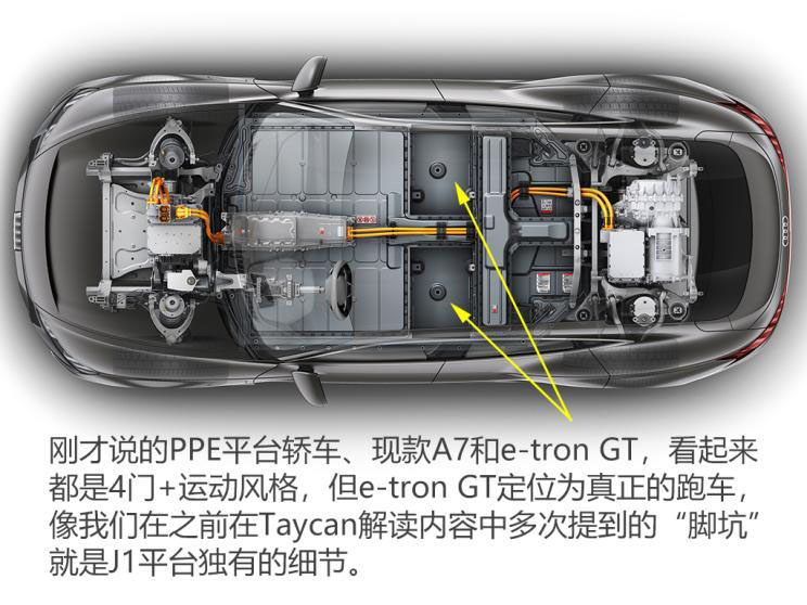 此平臺的核心優(yōu)勢就是較低的重心和車身高度,這也是保證良好操控的必要條件。所以也就意味著,上文提到的PPE平臺上的奧迪中大型車、現(xiàn)款的奧迪A7和未來的e-tron GT,雖然看起來風(fēng)格和尺寸類似,但開發(fā)理念卻有本質(zhì)的差異。