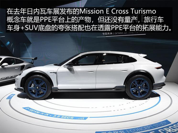 另外,保時捷在PPE上的已知產(chǎn)物是計劃在2021年量產(chǎn)的Mission E Cross Turismo,就是那個白色的,Taycan車頭+Panamera Sport Turismo車身造型+卡宴通過能力的那個概念車。