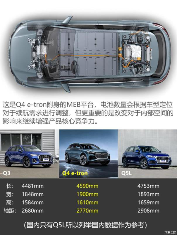 2、奧迪的首款MEB產(chǎn)品=Q3的身材+Q5的空間(預(yù)計2020年國產(chǎn))