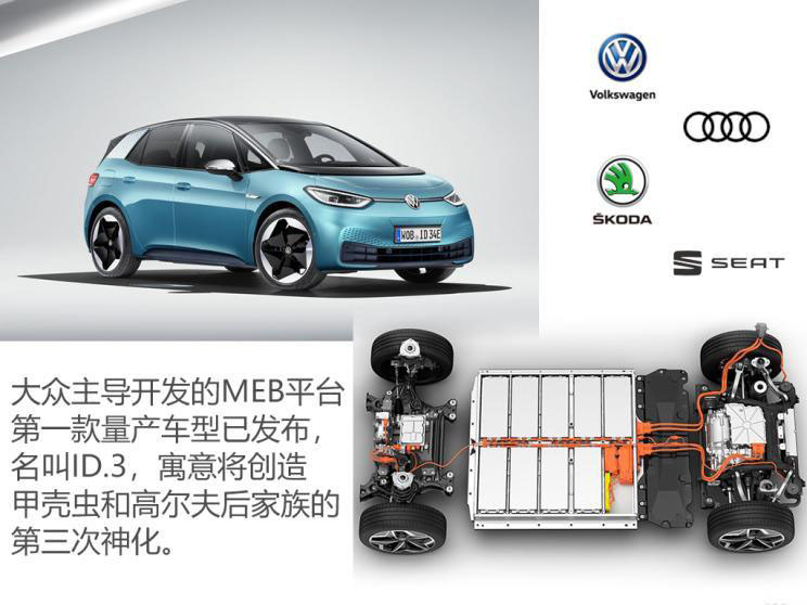 MEB是真正未來走量扛把子!在上個月法蘭克福車展上,大眾主導(dǎo)的MEB平臺交出了第一份作業(yè),大眾ID.3,定位明確的都不用過多描述,目標是打造純電動時代的像高爾夫系列一樣的神化,如果馬上聯(lián)想到純電動的e-Golf(7代)請忽略掉,因為e-Golf還是基于MQB的產(chǎn)物。在MEB平臺上我們會看到和MQB相同的繁榮家族,大眾、奧迪、斯柯達、西亞特等品牌都會在此平臺開發(fā)多款“經(jīng)濟適用”車型。