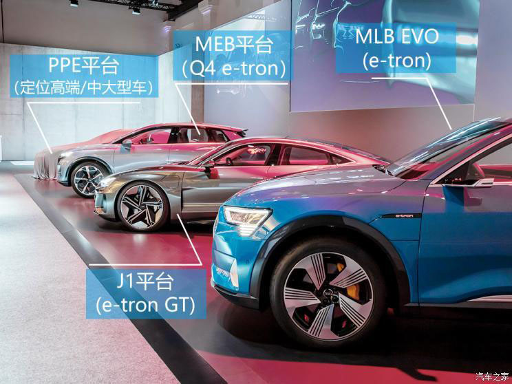2、奧迪電動化平臺1+3,已落上街的MLB EVO與即將落地的MEB、PPE、J1,5年后生成20款新車;