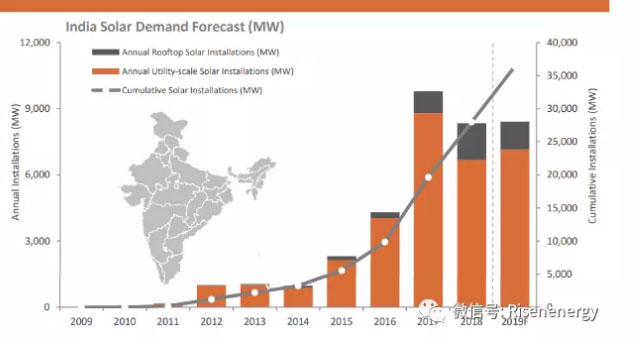 中國儲能網(wǎng)訊:根據(jù)Bridge to India 最近發(fā)布的印度太陽能市場報告,印度2019年新增裝機量預計與2018年持平,為8.3GW左右。