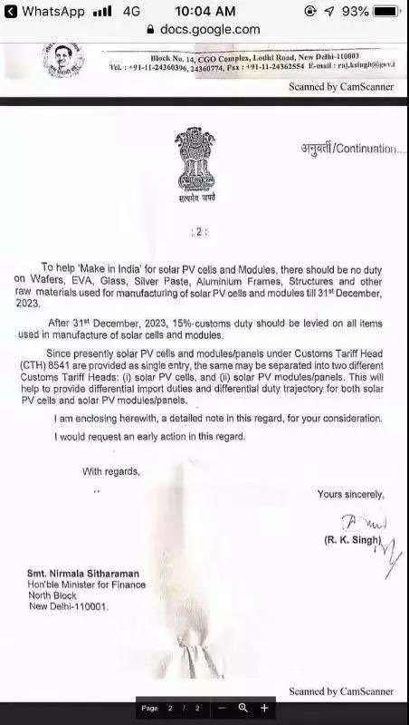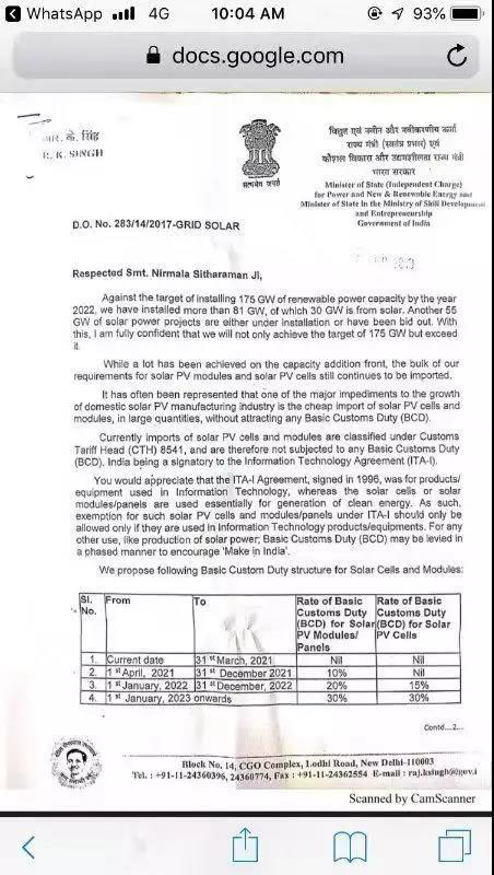 然而,印度政府的行事再次讓人跌破眼鏡,就在昨天,有消息稱,印度將再次加稅!印度新能源和可再生能源部(MNRE)負責人辛格(RK Singh)建議財政部將進口太陽能電池和組件納入基本關稅(BCD),以便在“印度制造”(Make in India)計劃下對國內(nèi)制造業(yè)進行再提振。