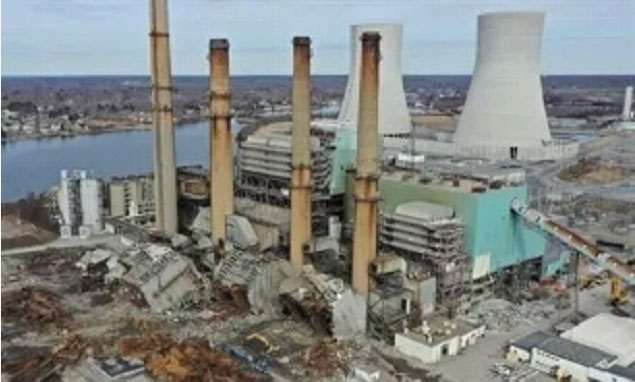 這座名為Brayton Point火電站服役已達(dá)54年,總裝機(jī)1.6GW,于2017年停運(yùn)。停運(yùn)后,Commercial Development Company (CDC)公司購買了這塊兒廢棄的場址,并于去年進(jìn)行了一次定向爆破,拆除了兩座高聳的冷卻塔。