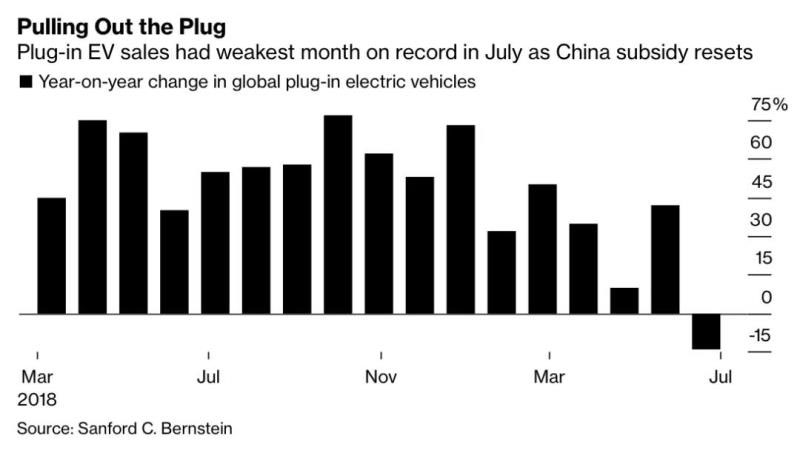 據(jù)彭博新聞社報道,2019年7月份全球售出12萬輛插電式電動汽車,比去年同期下降14%。這是歷史上全球電動汽車銷售量首次出現(xiàn)同比下降,其原因值得關(guān)注。彭博新聞社認(rèn)為,這主要是因為中國對電動汽車補貼退坡,加上貿(mào)易戰(zhàn)陰影下經(jīng)濟(jì)放緩影響了消費者的購車信心。
