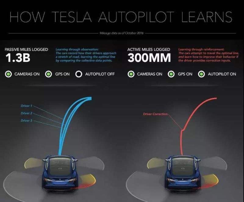 截至2018年11月,特斯拉已經(jīng)積累了超過16億公里的自動(dòng)駕駛數(shù)據(jù)。相比之下,Waymo僅收集了大約2400萬公里。據(jù)知名投資公司Ark分析師塔莎?基尼稱,當(dāng)你觀察特斯拉汽車上行駛的所有里程數(shù)時(shí)(無論自動(dòng)駕駛系統(tǒng)是否啟動(dòng)),記錄的總里程數(shù)都要超過其他公司。