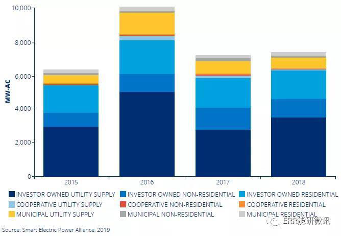 公用事業(yè)供給—總體而言,2018年市場(chǎng)增長(zhǎng)率增長(zhǎng)了15.1%,全國(guó)并網(wǎng)4174.3MW。佛羅里達(dá)州,得克薩斯州和明尼蘇達(dá)州的公用事業(yè)供應(yīng)市場(chǎng)在2018年呈現(xiàn)強(qiáng)勁增長(zhǎng)。