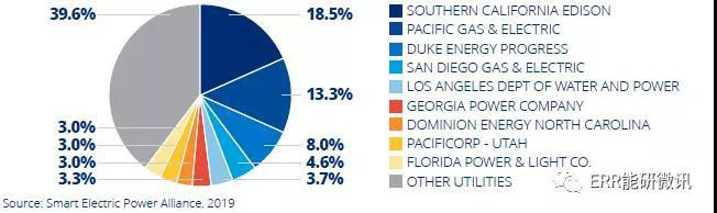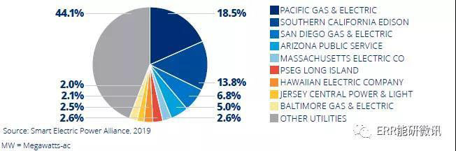 2018年,圣地亞哥天然氣和電力公司(SDG&E)、南加州愛迪生公司(SCE)和太平洋天然氣和電力公司(PG&E)部署了740.6MW的居民太陽(yáng)能,占2018年部署的所有居民太陽(yáng)能的39.1%。在過去的三年里,這三家公用事業(yè)公司和亞利桑那州公共服務(wù)公司是全國(guó)唯一每年將100MW以上的居民太陽(yáng)能接入電網(wǎng)的公用事業(yè)公司。