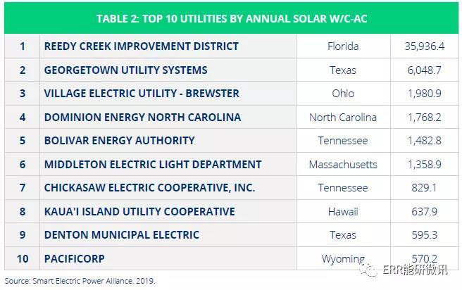 在得克薩斯州,公共電力公司奧斯汀能源公司和喬治敦公用事業(yè)系統(tǒng)公司在SEPA年度太陽(yáng)能裝機(jī)容量排名前10,這兩家公用事業(yè)在2018年共有346.9MW并網(wǎng),占全國(guó)新增太陽(yáng)能裝機(jī)的68.1%。