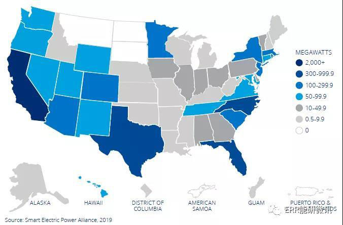 居民部門—總體而言,2018年市場(chǎng)增長(zhǎng)率下降了5.7%,全國(guó)并網(wǎng)1891.7MW。加州繼續(xù)占大部分部署,但佛羅里達(dá)州,北卡羅來納州和弗吉尼亞州的強(qiáng)勁增長(zhǎng)表明新住宅市場(chǎng)的出現(xiàn)。