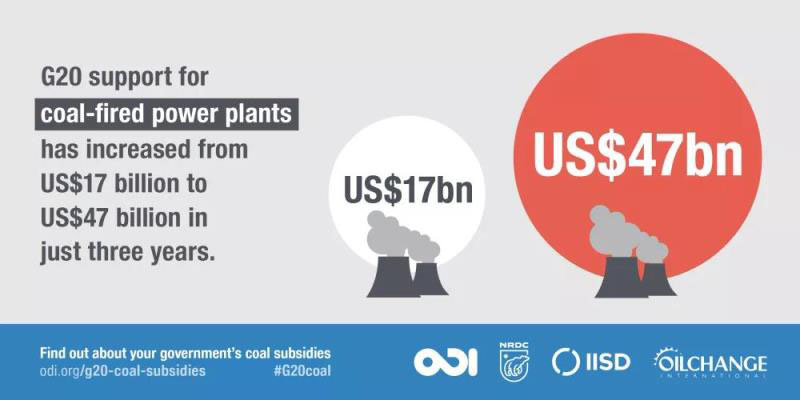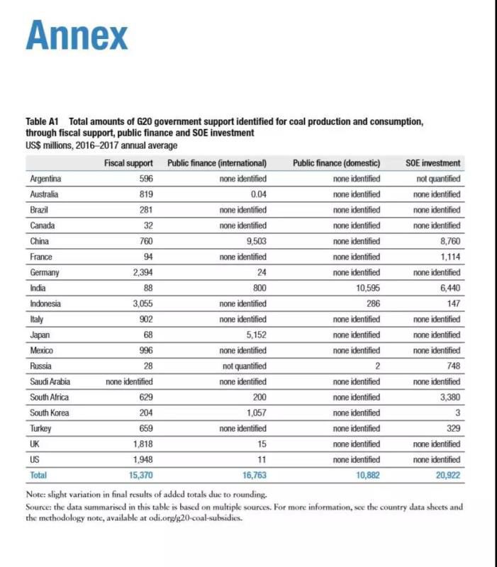 中國儲(chǔ)能網(wǎng)訊:英國智庫ODI發(fā)布研究報(bào)告,2016-2017年間G20各國整體對于煤炭領(lǐng)域的資金支持達(dá)到平均每年638.29億美元,涉及煤炭生產(chǎn)(66.67億美元)、煤電(473.36億美元)、消費(fèi)(66.91億美元)、煤炭轉(zhuǎn)型(31.35億美元)。