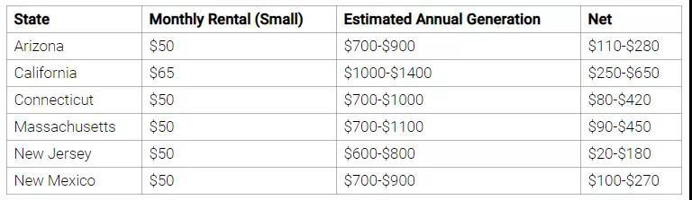 而此次Tesla推出的光伏租賃項目,是光伏領(lǐng)域的一次革新,讓用戶們更容易看到正向收益,并且沒有前期的購買和安裝費用,以下表第二行的加州為例,月租金65美元的租賃套餐,每年可以產(chǎn)生1000-1400美元的電量,減去租賃費用后,還可以幫用戶節(jié)省250-650美元。