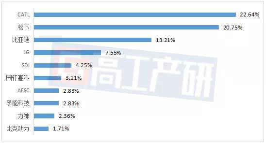 2018年全球汽車動(dòng)力鋰電池企業(yè)出貨量排名