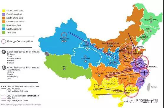 圖2 中國電網(wǎng)區(qū)域劃分與“西電東送”電力流向