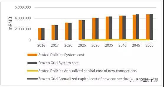 圖12 兩種情況下的系統(tǒng)成本(電網(wǎng)成本和發(fā)電成本)