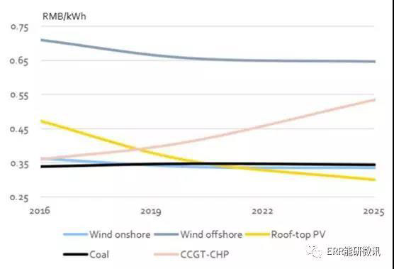 圖8 兩種情景下測算的不同能源的平準(zhǔn)化度電成本