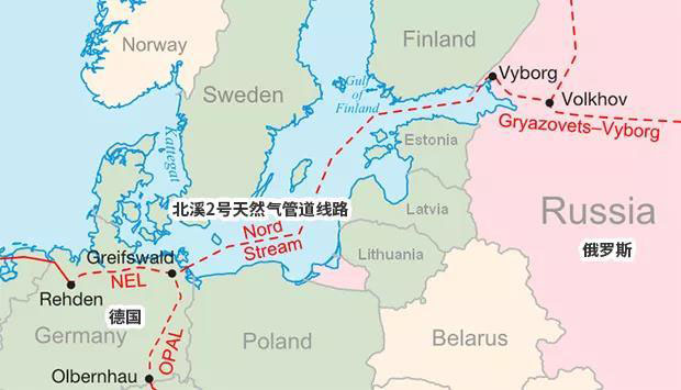北溪2號天然氣管道線路圖(來源:自維基百科)
