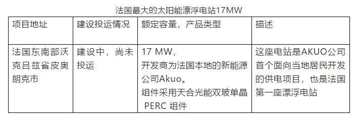 法國(guó)最大的太陽(yáng)能漂浮電站17MW