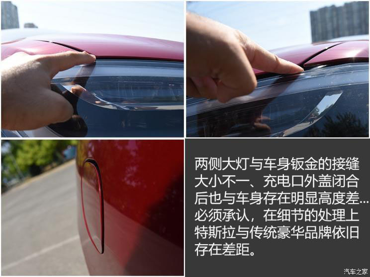 兩側(cè)大燈與車身鈑金的接縫存在不勻的問題,充電口外蓋閉合后也與車身存在明顯高度差...如果仔細(xì)“找碴”,這樣的細(xì)節(jié)做工問題在這臺(tái)提車?yán)锍虄H18km的試駕車上并不鮮見,這對(duì)于一臺(tái)售價(jià)超過80萬(wàn)元的豪華車型來說實(shí)屬不該。只能說當(dāng)下的特斯拉相比傳統(tǒng)豪華品牌,在某些方面還是存在著一些不足的。