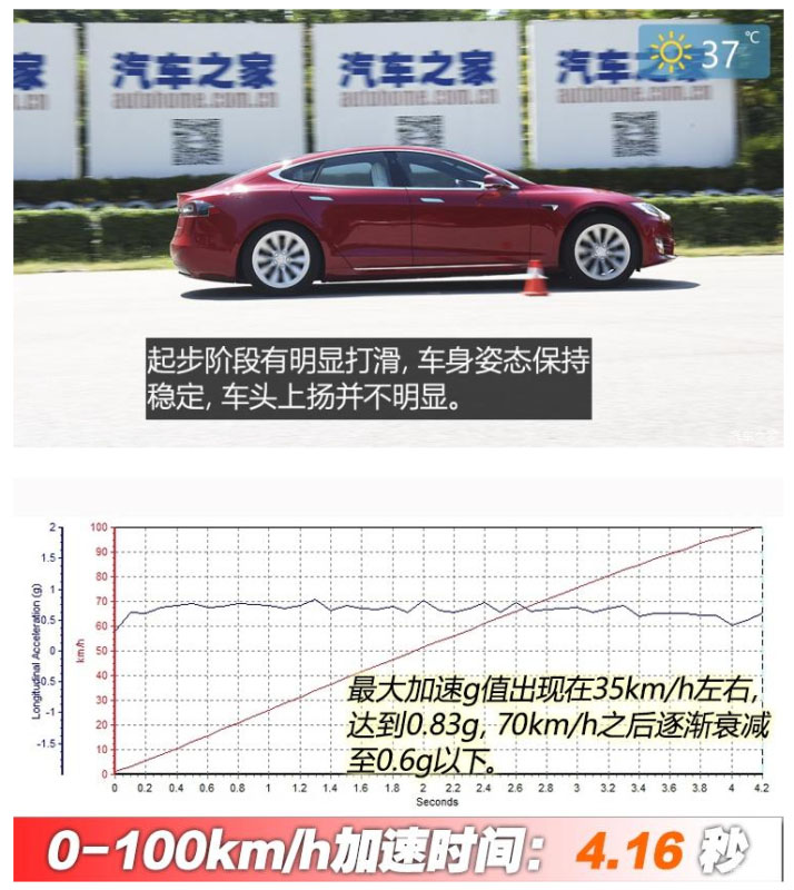 小結(jié):受測(cè)試當(dāng)天環(huán)境所限沒能取得官方3.8s的加速成績(jī),即便如此2019款特斯拉Model S長(zhǎng)續(xù)航版還是表現(xiàn)出了相當(dāng)不俗的加速性能;而對(duì)于其比較一般的制動(dòng)成績(jī)而言,更換一套側(cè)重抓地性能的輪胎應(yīng)該是最直接簡(jiǎn)單的解決方案。