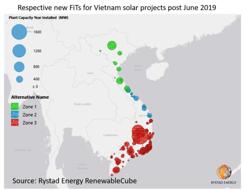 預(yù)計(jì)補(bǔ)貼降低會(huì)使一部分開發(fā)商熱情冷卻,但屆時(shí)也可以篩選出更多認(rèn)真參與的玩家。同時(shí),Rystad分析師表示,越南南部太陽能輻照度比北部輻照度多25%,與補(bǔ)貼降低的幅度相同,因此,該地區(qū)的裝機(jī)吸引力將依然存在。另外,補(bǔ)貼的下調(diào)可以幫助太陽能項(xiàng)目更均勻地部署,緩解南方的電網(wǎng)瓶頸。