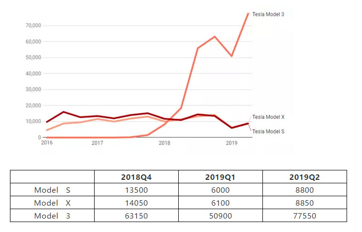 7月2日,特斯拉公布2019年第二季度交付量創(chuàng)下新紀錄。截至6月30日的三個月中,特斯拉在全球范圍內(nèi)一共交付95,200輛電動車,較第一季度銷量環(huán)比大增51.1%,并打破其2018年第四季度創(chuàng)下的交付紀錄(90,700輛)。