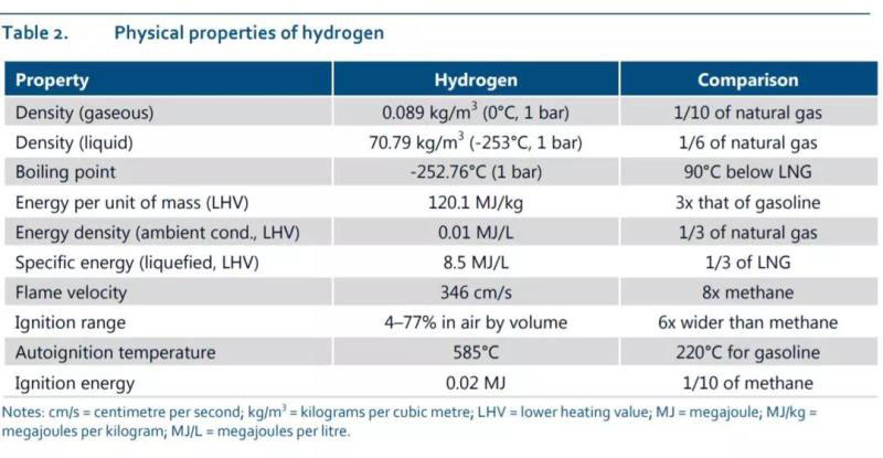 根據國際能源署匯總數據,氫氣與天然氣相比,有以下的不同: