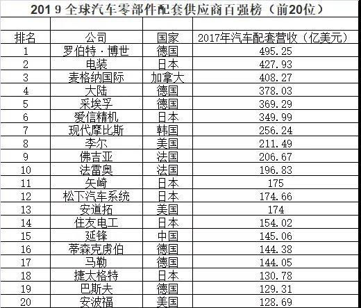發(fā)布榜單的《美國汽車新聞》,創(chuàng)刊于1958年,總部位于美國“汽車城”底特律。2019年全球零部件配套供應商百強榜的評定標準,是各供應商2018年度的業(yè)績。在參與百強榜評選時,供應商需要提供公司名稱、所在地、聯(lián)系方式以及相關數(shù)據(jù)。該榜單主要關注汽車零部件配套業(yè)務的營業(yè)收入,部分規(guī)模較大的零部件供應商沒有上榜,或許是因為沒有提交相關數(shù)據(jù)。