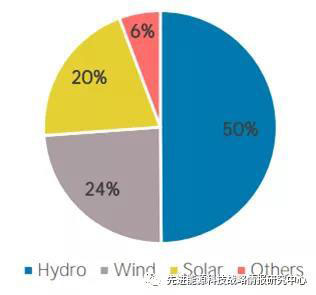 圖2 截至2018年底全球不同可再生能源裝機(jī)量占比
