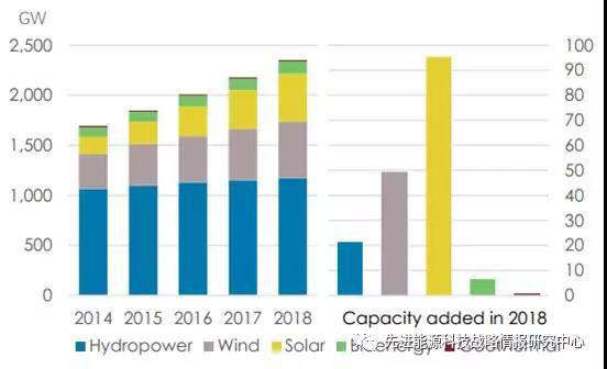 圖1 2014-2018年全球可再生能源裝機(jī)量變化態(tài)勢(單位:GW)