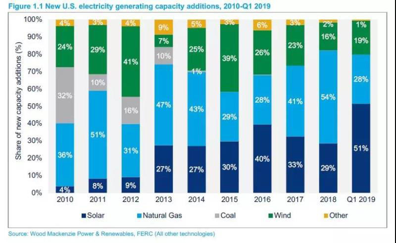 1、美國(guó)2019第一季度新增裝機(jī)2.7GW,成為迄今美國(guó)市場(chǎng)上裝機(jī)最大的第一季度。
