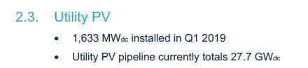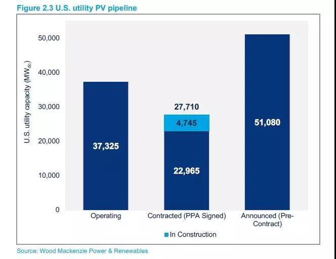 4、公用事業(yè)級(jí)地面電站仍是美國(guó)市場(chǎng)的主要推力,占第一季度美國(guó)新增裝機(jī)量的61%,有1.6GW項(xiàng)目并網(wǎng),同時(shí)在建項(xiàng)目有4.7GW,2019年有望成為公用事業(yè)級(jí)電站項(xiàng)目的爆發(fā)年,相比2018年增長(zhǎng)46%。