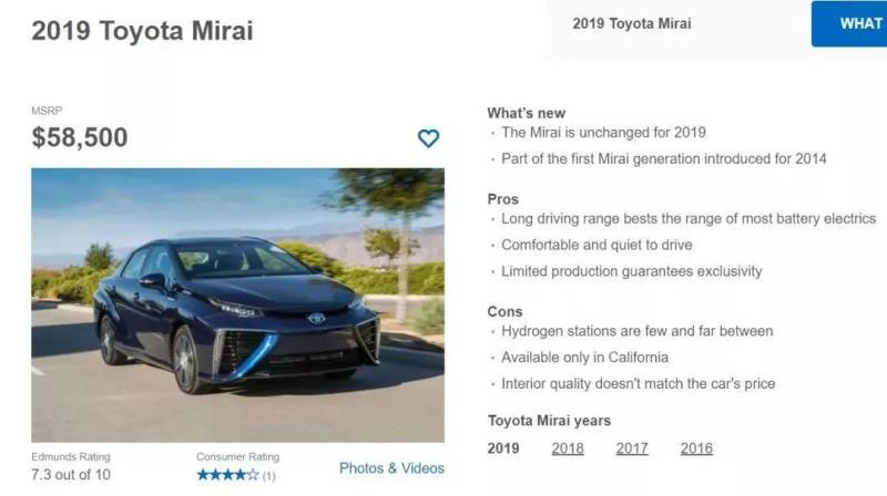 早在2014年,豐田就在日本率先發(fā)布了第一代氫燃料電池車Mirai,并在日本小規(guī)模上市。2018年Mirai開始量產(chǎn),預計2020年總產(chǎn)量達3萬輛,豐田計劃在2025年前讓燃料電池車售價降至約2萬美元。