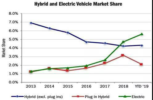 另外,與當(dāng)?shù)仉妱悠囀袌龇蓊~破5%不同的是,加州汽車市場第一季度整個下降。新的輕型車輛注冊量在2019年第一季度下降了5.3%。